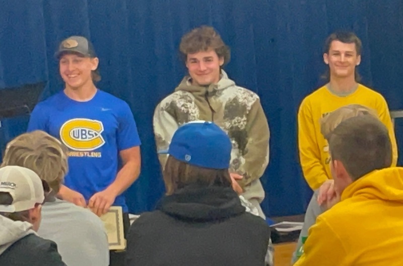 Kimball football players (L to R): Haden Rosenow, Andrew Becker and William Serbus.
