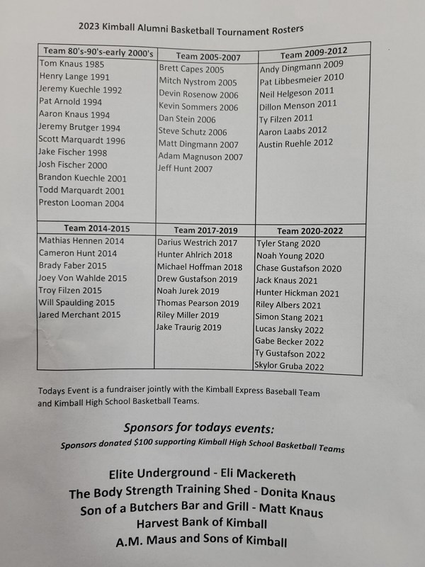 Proceeds from the special event benefit the Kimball Cubs boy's and girl's varsity basketball programs and the Kimball Express Baseball team.